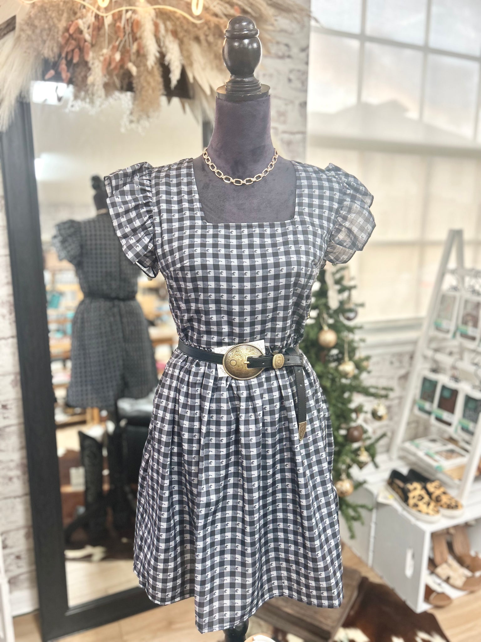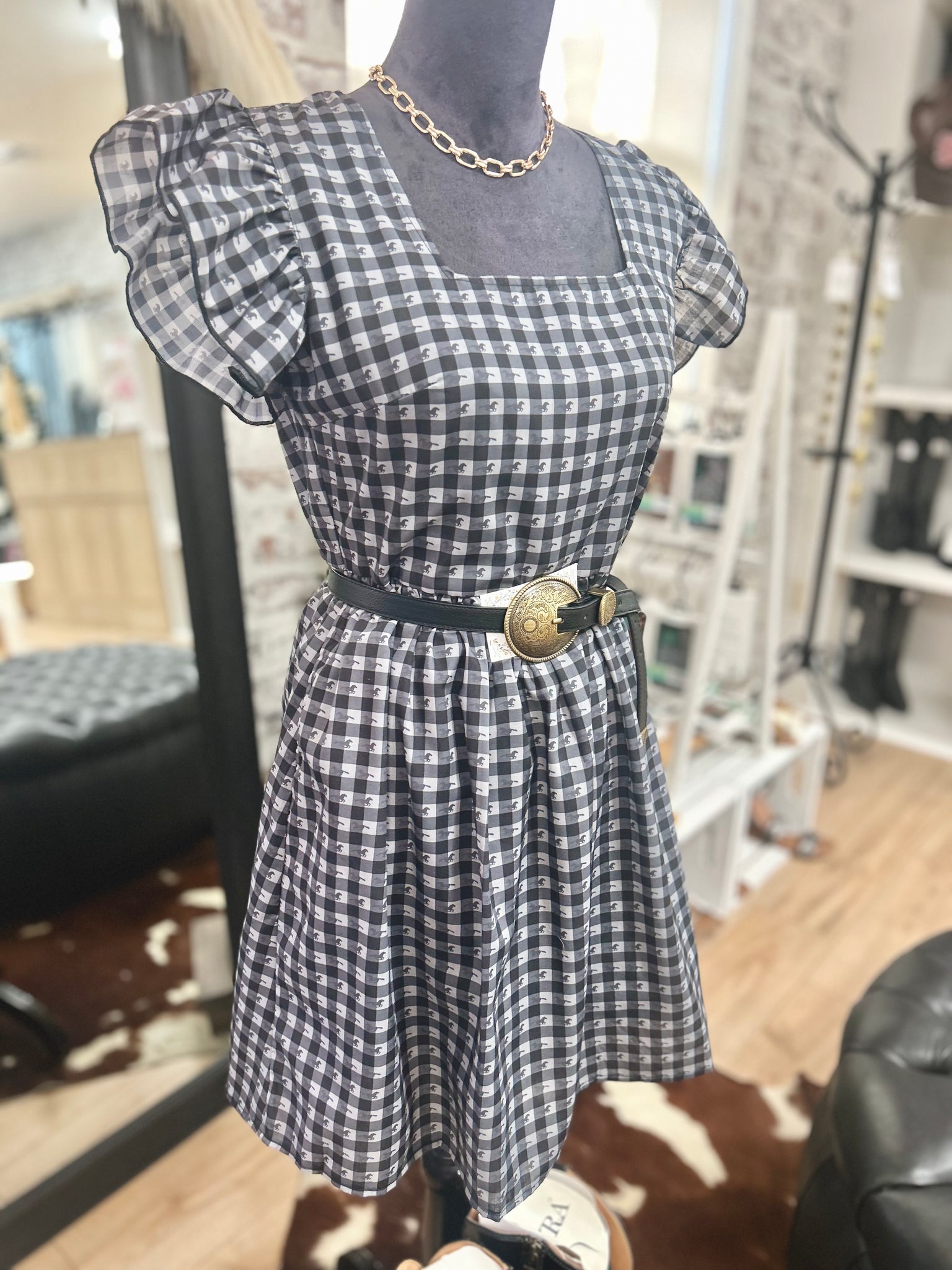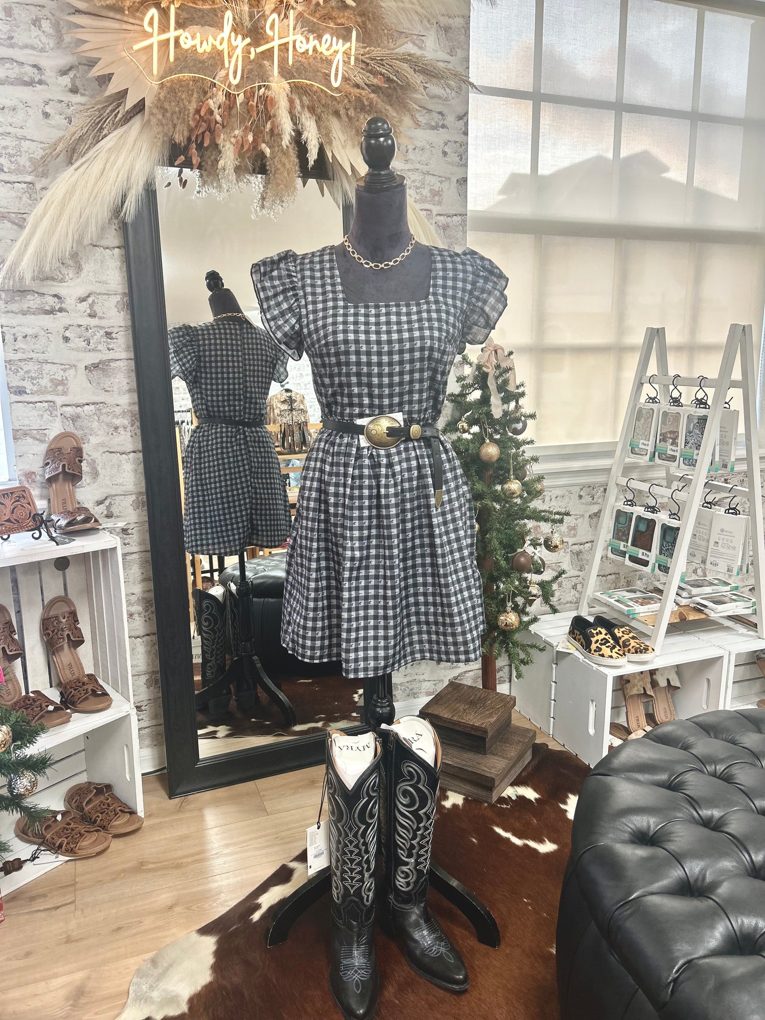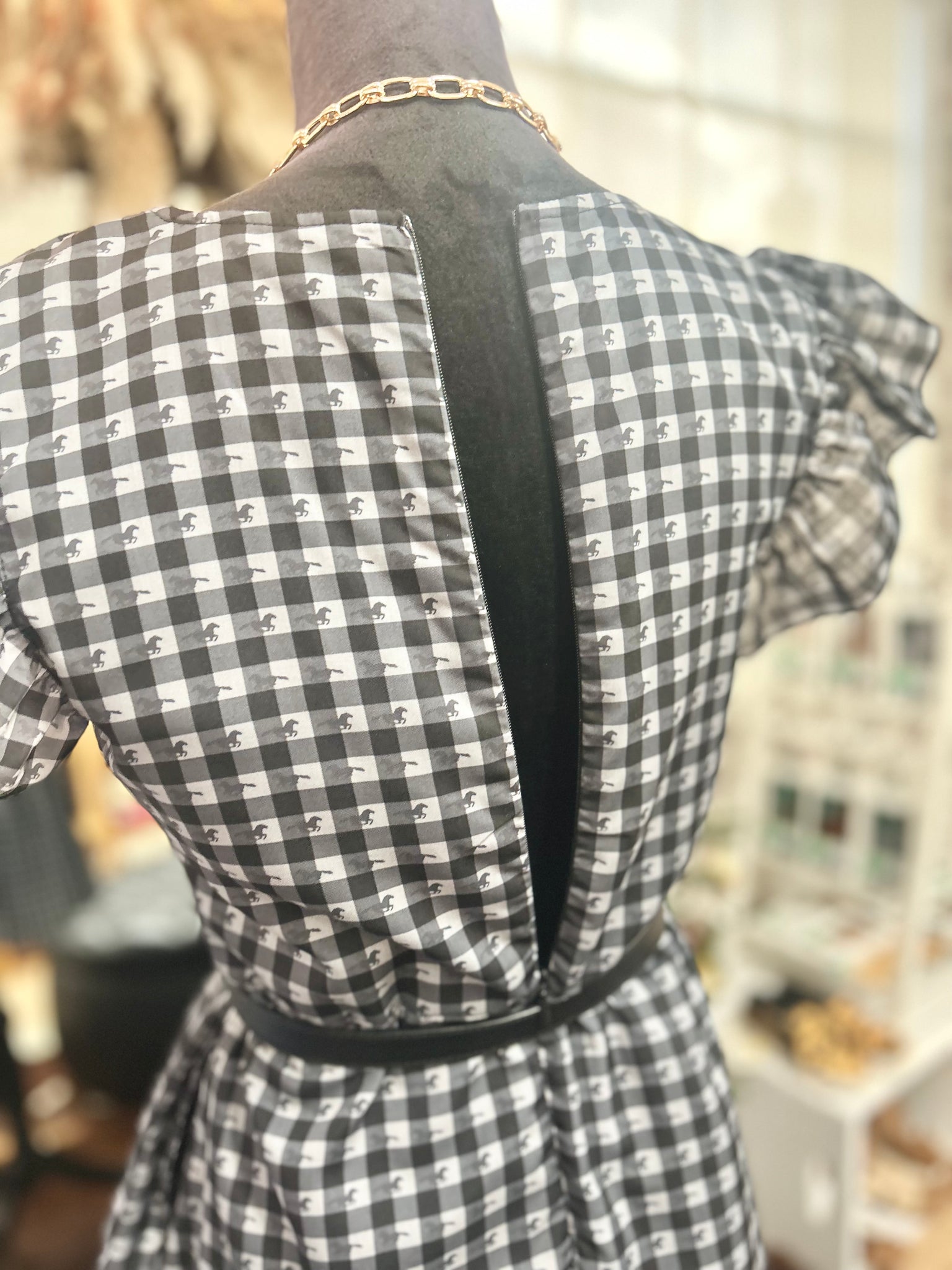 Saddle up in style with the Mustang Moves Dress, where classic gingham meets wild west charm. This chic baby doll cut features an adorable pony pattern woven throughout the gingham design, capturing that perfect blend of playful and polished. The convenient zip back closure makes getting dressed effortless, while the flattering silhouette keeps you looking fresh from morning to night. Perfect for anyone who loves a touch of western flair with timeless appeal.